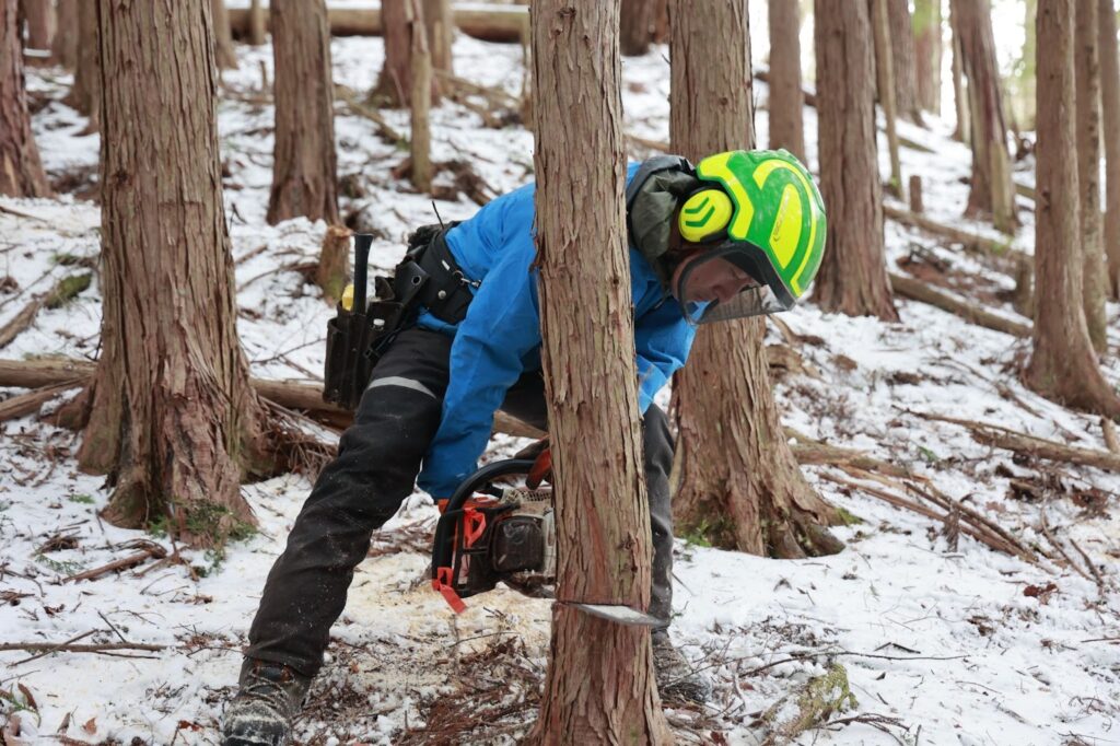 「チェーンソーの音も好きなんです。イヤーマフをして聞いていると、水の中にいるような感覚になり、自然との一体感を感じられます」そう穏やかに話してくださいました。
